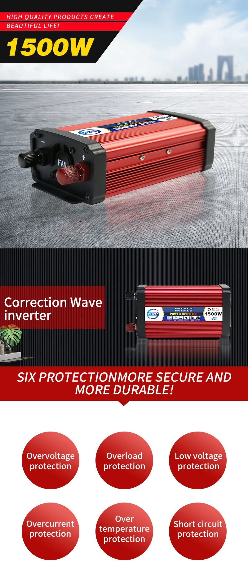 1. There are protections for overvoltage, overcurrent, overload, short circuit, undervoltage, high temperature, etc. 2. Universal