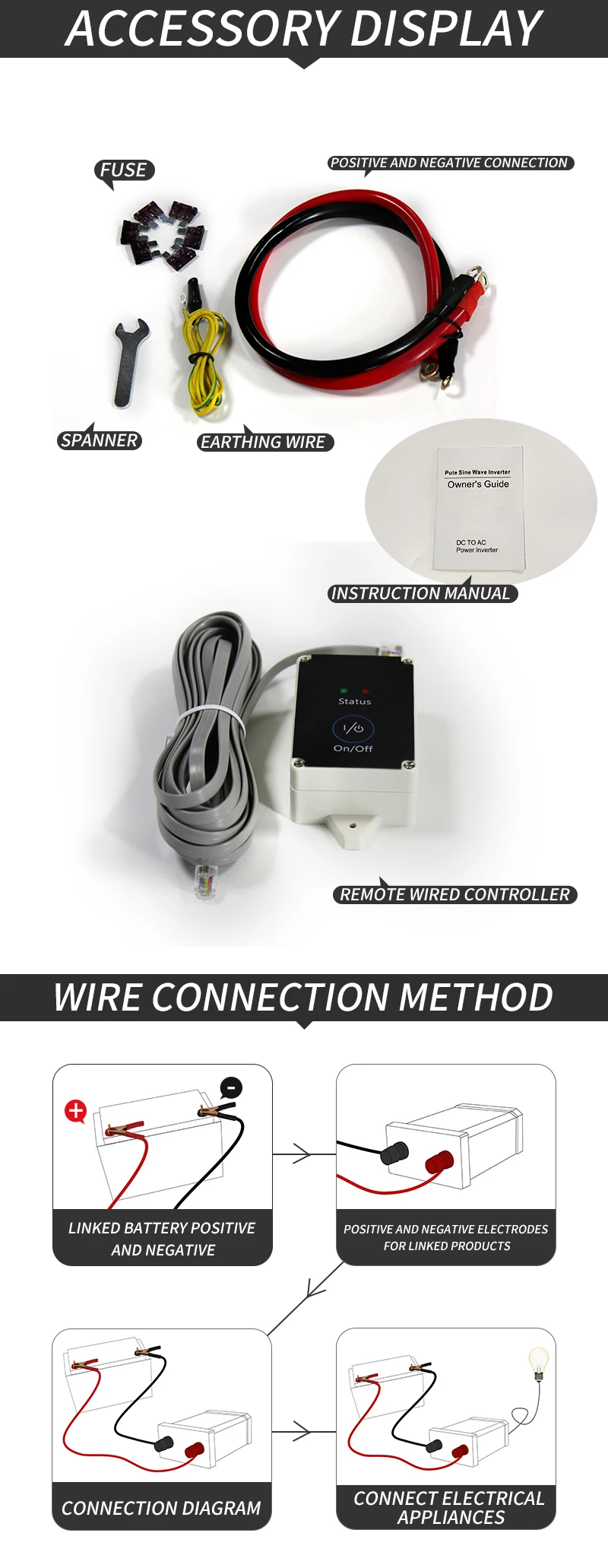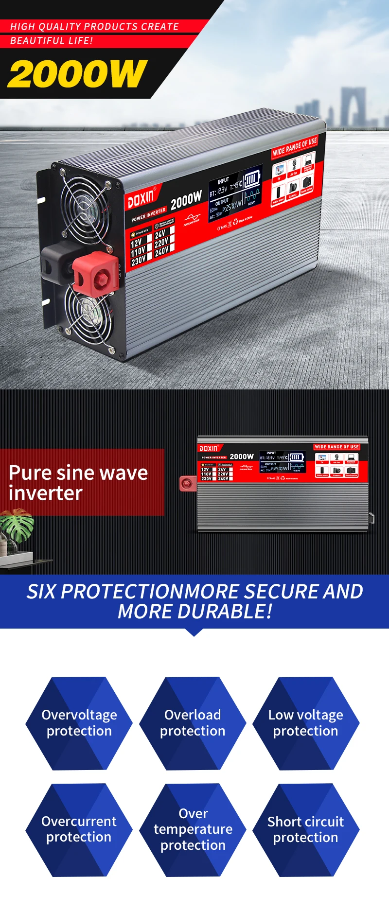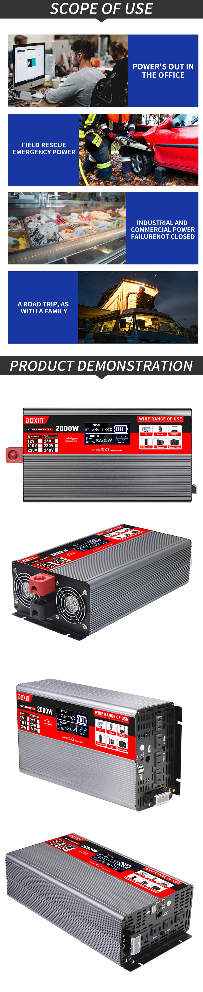 Professional 1000W Car Inverter 24 V 220 V Voltage Converter 24v to 220v Car Charger Volts Display Output 50Hz Power Inverter
